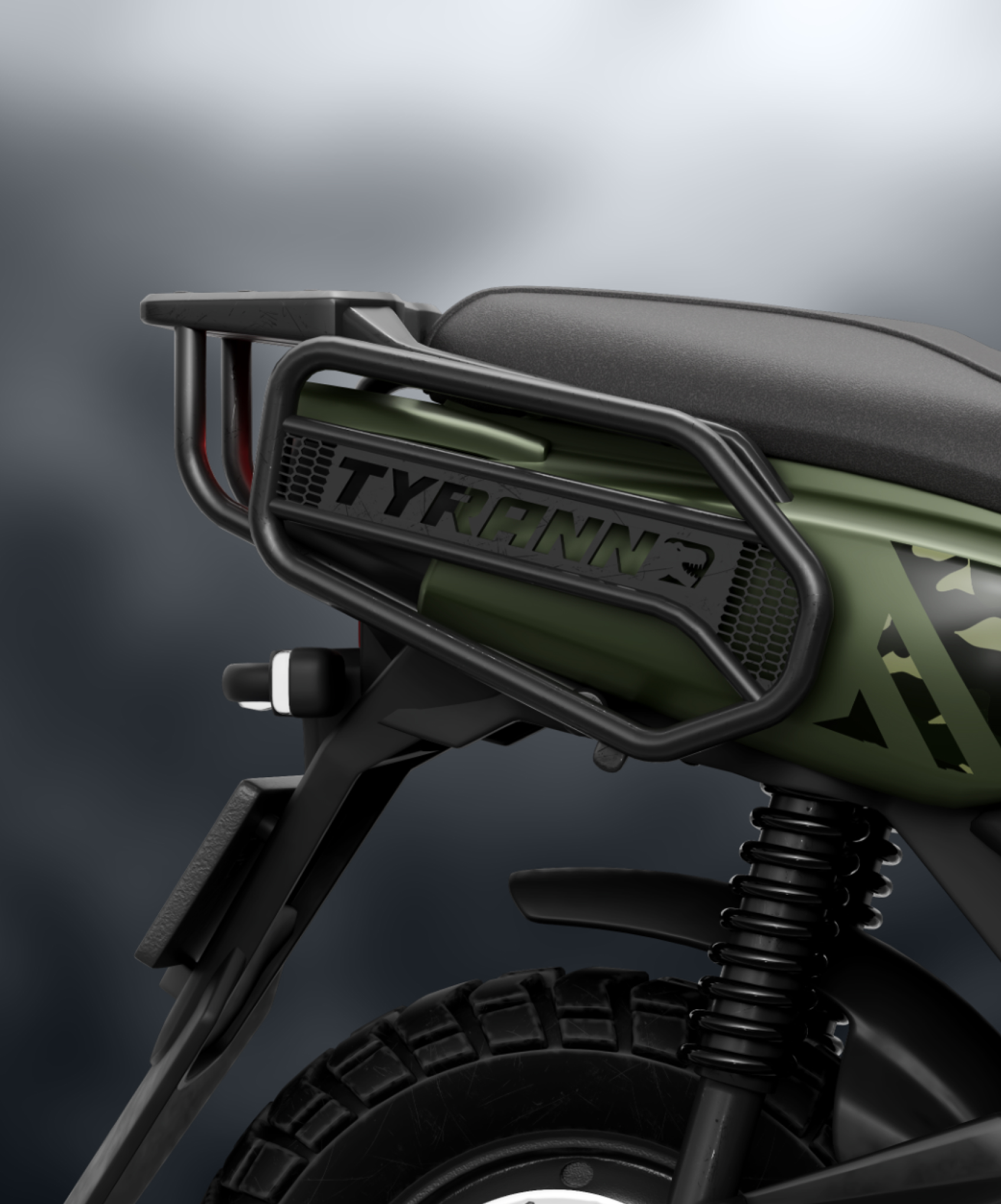 Terinspirasi dari gabungan kata T-Rex yang melambangkan kekuatan dan Terrain yang menggambarkan kemampuan menaklukkan segala medan, motor listrik Tyranno menjadi simbol ketangguhan modern. Didesain untuk penjelajah kota yang ingin menunjukkan bukan hanya tujuan, tetapi juga cara mereka sampai ke sana.